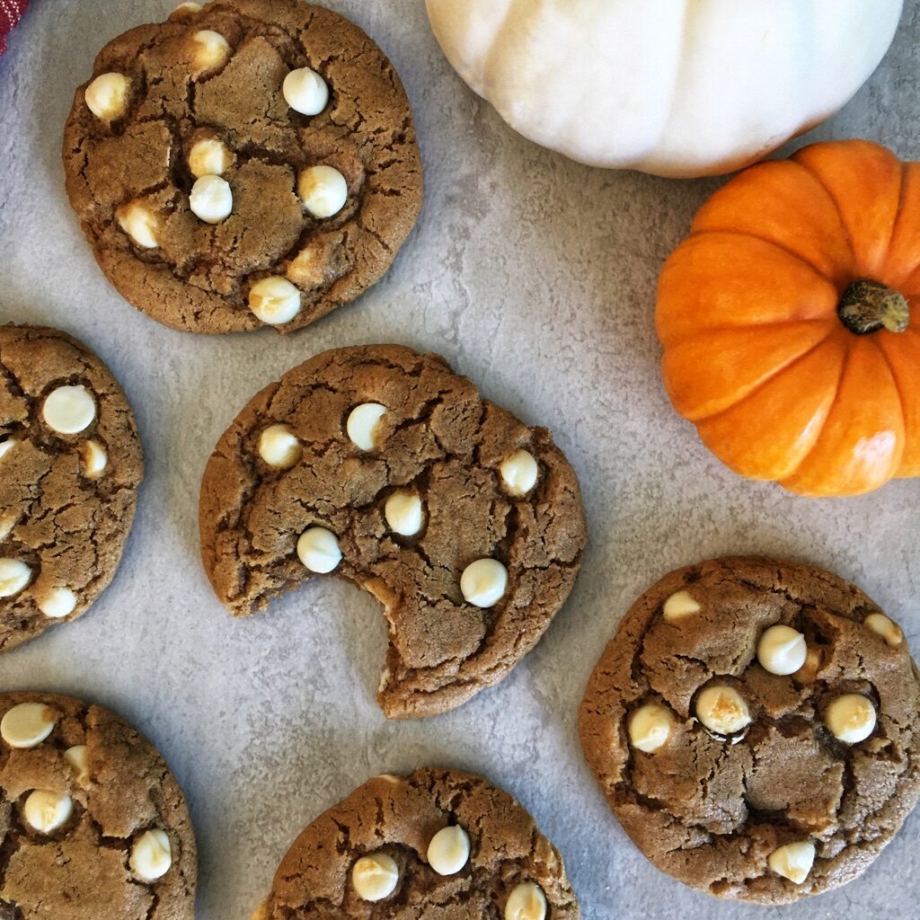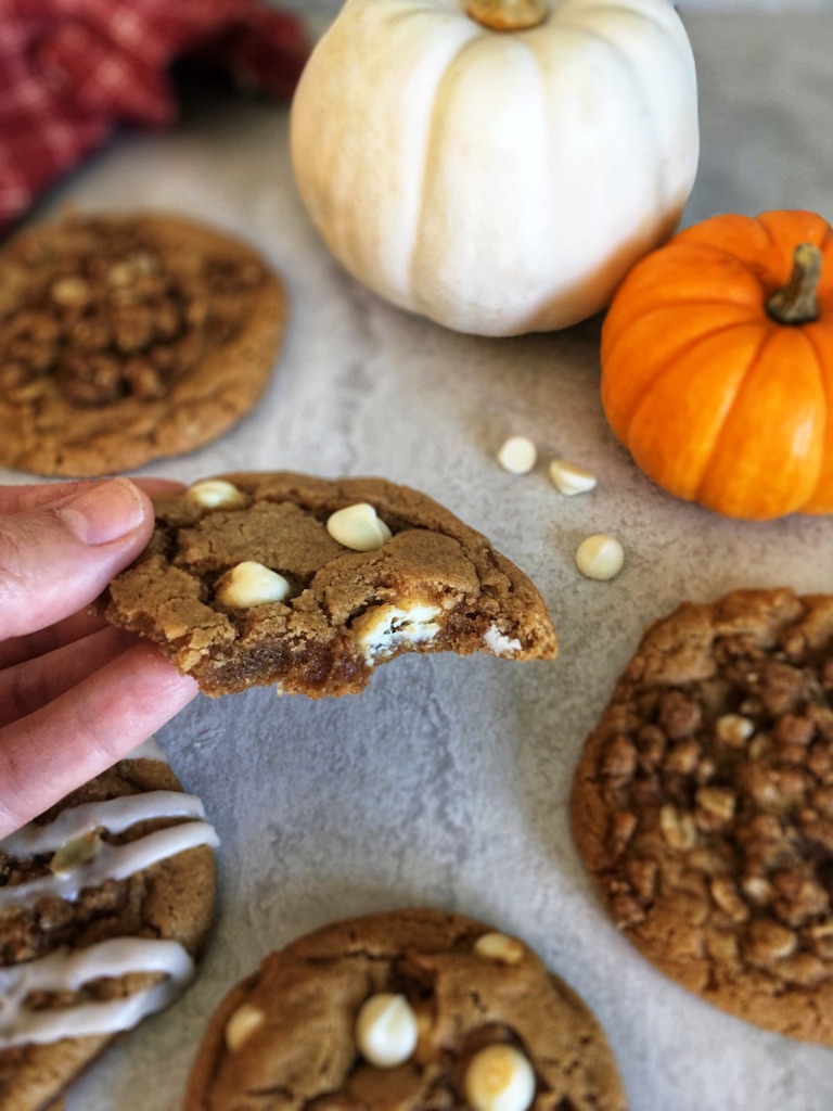 Pumpkin spice, browned butter, and white chocolate are some of the best flavors of fall. These soft, chewy cookies begin with brown butter because it gives a warm depth to the cookie. Then, a subtle hint of pumpkin spice conjures up images of warm scarves and crisp leaves. Add a dash of white chocolate chips…and cozy up with a cup of coffee, your favorite blanket, and some of these delicious cookies to really celebrate the season.