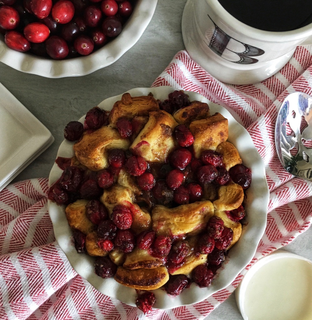 It’s always fun to make fancy breakfast for holidays (well, I think so)! Last year, I made fancy cinnamon rolls for Christmas morning…however, they definitely required some work…so when I saw a cinnamon roll hack from Crazy for Crust, I knew I had to try it! Turns out, it works really well…so I added cranberries to make it festive…and voila! Easy Christmas Cranberry Cinnamon Roll Bake! Enjoy!
