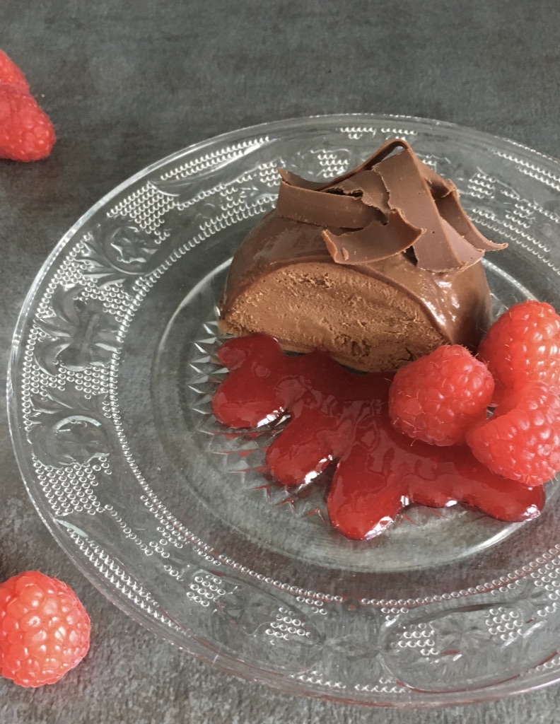 *I’ve stored and served these both from the freezer (let stand for 5 minutes at room temperature before serving) and from the fridge. The various chocolate coatings and mousse take on a different texture and taste from the freezer. I’ve had various taste testers say they preferred the domes from the freezer, while others insisted the ones from the fridge were superior! I’d suggest you try it for yourself! Either way, garnish with Raspberry Coulis, a Candied Orange slice and Dark Chocolate Orange Fudge Sauce, (recipes coming soon) or simple chocolate curls and enjoy!