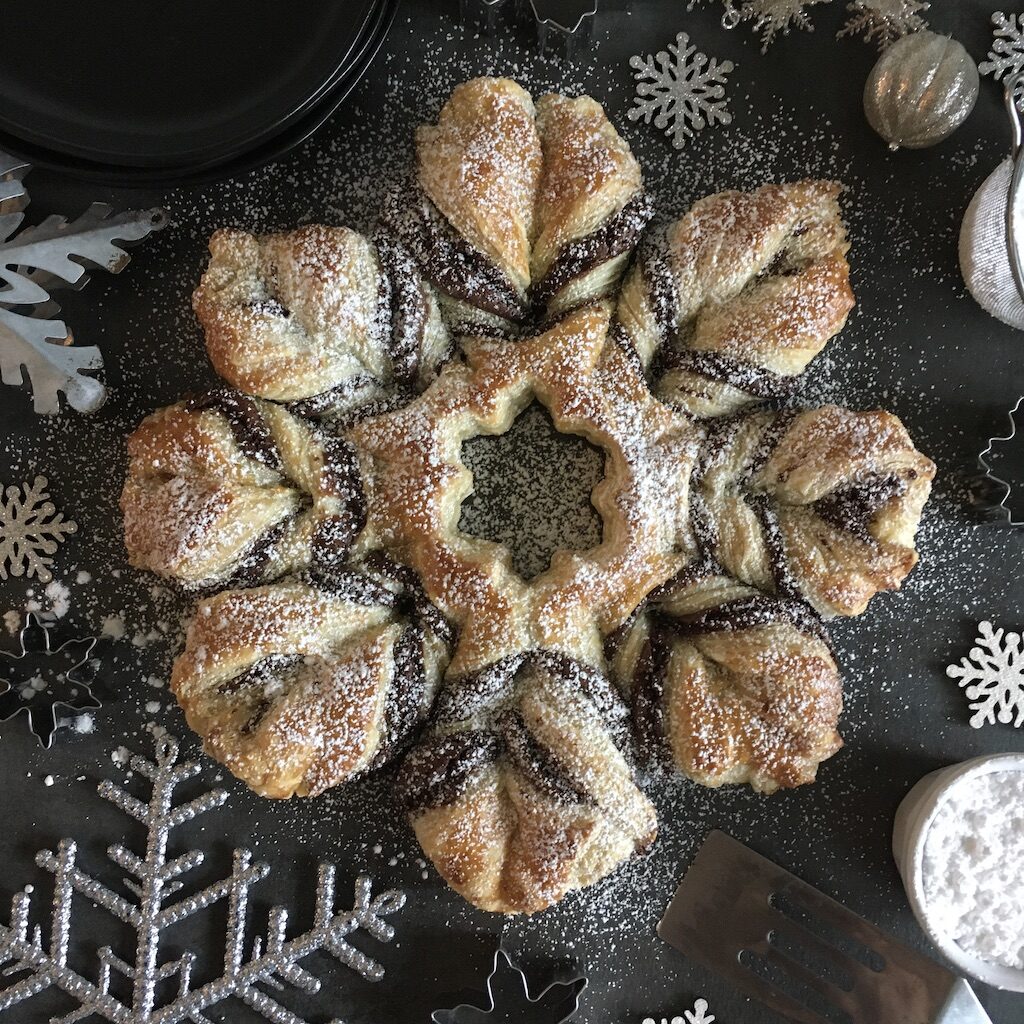 Elevated, elegant, and surprisingly easy…this puff pastry snowflake is filled with molten chocolate and hints of citrus! Perfect for holiday brunch!